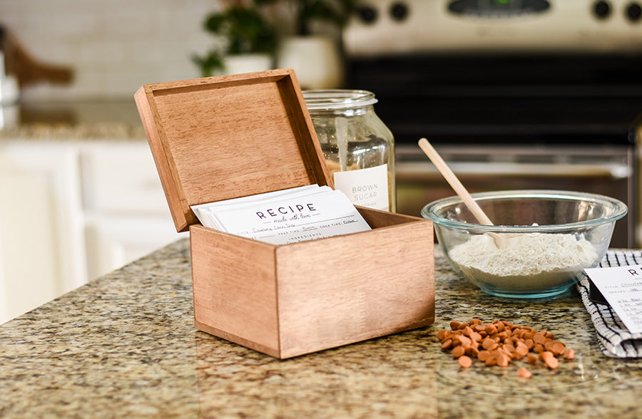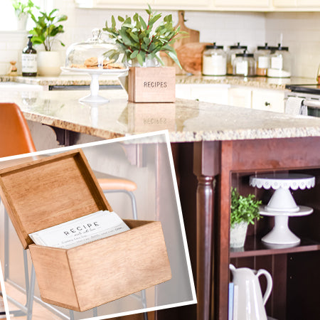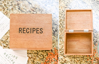 This gorgeous wooden recipe box is obviously perfect to collect recipe cards in but it can hide lots of other things too! Your secret stash (you know, those cookies you don’t want to share with the kids) herbs and spices or even medicine bottles. The sky is the limit with this beauty... that's why we LOVE it! And regardless of what you use it for... this wooden recipe box will look GORGEOUS displayed on your kitchen counter!