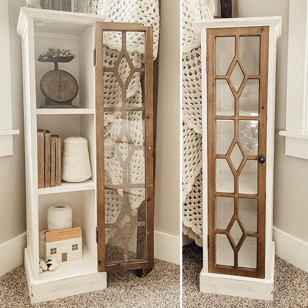 Bring some vintage farmhouse style to your home with today’s steal! This Wooden Storage Column Cabinet is stunning with its natural and whitewashed wood with handy storage inside! We LOVE every inch of this piece! Style this beauty in your living room to collect your books and remotes. Add this beauty to your dining room or kitchen for your coffee cups, small plates, or even your K-cups! You’ll LOVE seeing this piece styled in your entryway holding potted plants to greet you every day... your guests are sure to ooohhh and aaahhh over it. The sky is truly the limit with this beautiful cabinet! It's sure to add SO much farmhouse charm to your space.