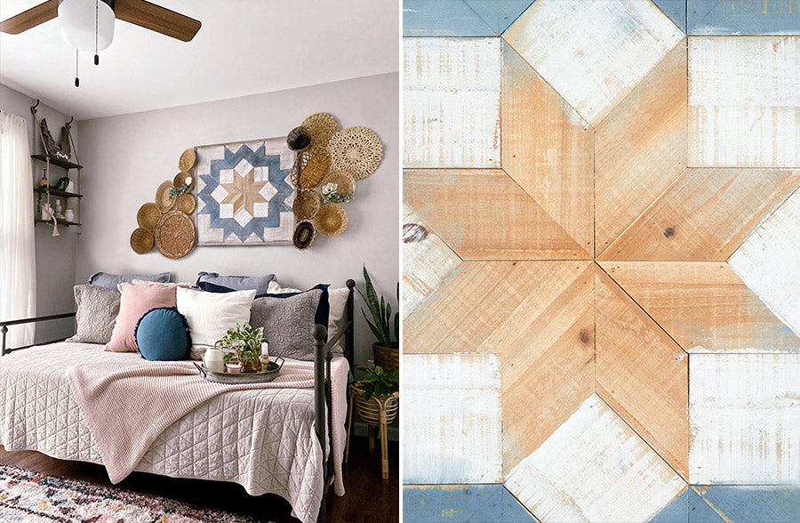 We are swooning over the architectural design and the colors of this BEAUTIFUL wooden wall art! This Tribal Wall Art just exudes boho, farmhouse charm and is sure to make a statement in your home!