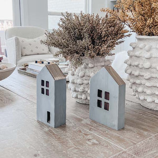 These Wooden Village Houses are perfectly sized to style on your mantel, tiered tray, shelf, coffee table, or as a centerpiece! Style them together or seperately to spread the coziness throughout multiple rooms!