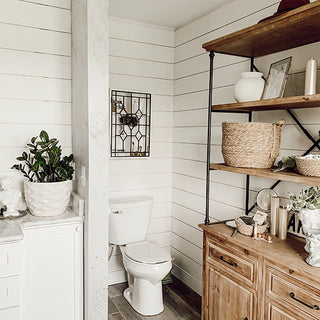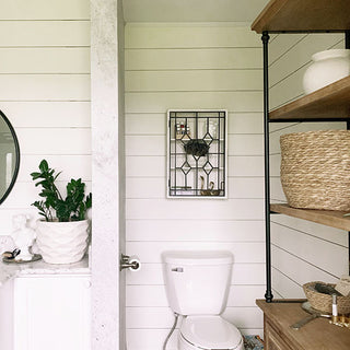 Use this Wooden Wall Hanging Curio Cabinet with Black Iron Door in your bathroom to hold your favorite beauty products OR you can fill up mason jars with your bathroom essentials to really create a farmhouse look in your home. Hang it in your kitchen to display your treasured china pieces or even a spice cabinet! Wherever you choose to hang this beauty, it's white distressed finish will DEFINITELY create farmhouse charm in your home that will greet your family and friends with a warm welcome!