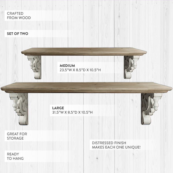 Great Value: Despite its premium quality, our Distressed Corbel Wooden Wall Shelf Set offers exceptional value. While the same exact set sells for $139.99 on another website, you can enjoy the same craftsmanship and style at a more affordable price here.