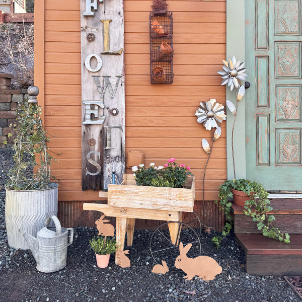 Add timeless rustic elegance to your space with this Rolling Wooden Wheelbarrow Decor—because every season deserves a charming display!