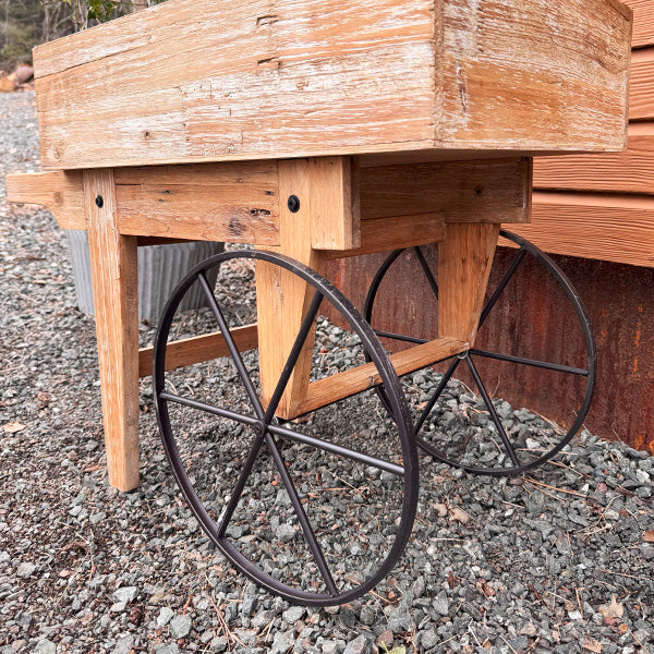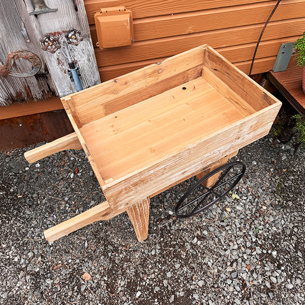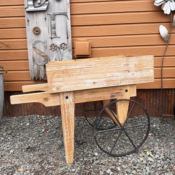 - Rustic Charm: Crafted from sturdy wood with a weathered finish, this wheelbarrow brings vintage farmhouse appeal to any setting.