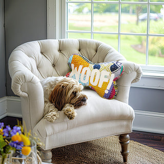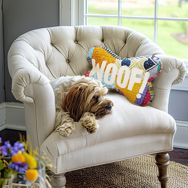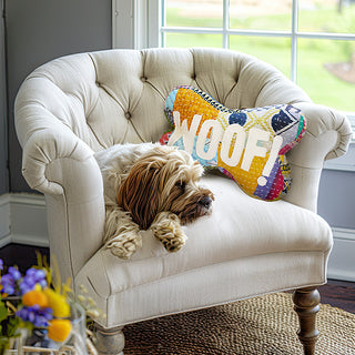 So whether you're a devoted dog lover or simply seeking to inject some fun into your living space, the 14-inch Colorful Patchwork Woof Cotton Pillow is a must-have accessory that'll have tails wagging and hearts melting in no time!