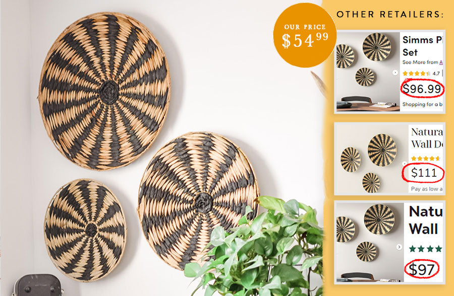 We are BEYOND excited to bring you today’s steal!! We are in LOVE with this wall décor! It is beautifully crafted from woven hyacinth to mimic the look of baskets! This art will take your space to the next level!