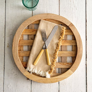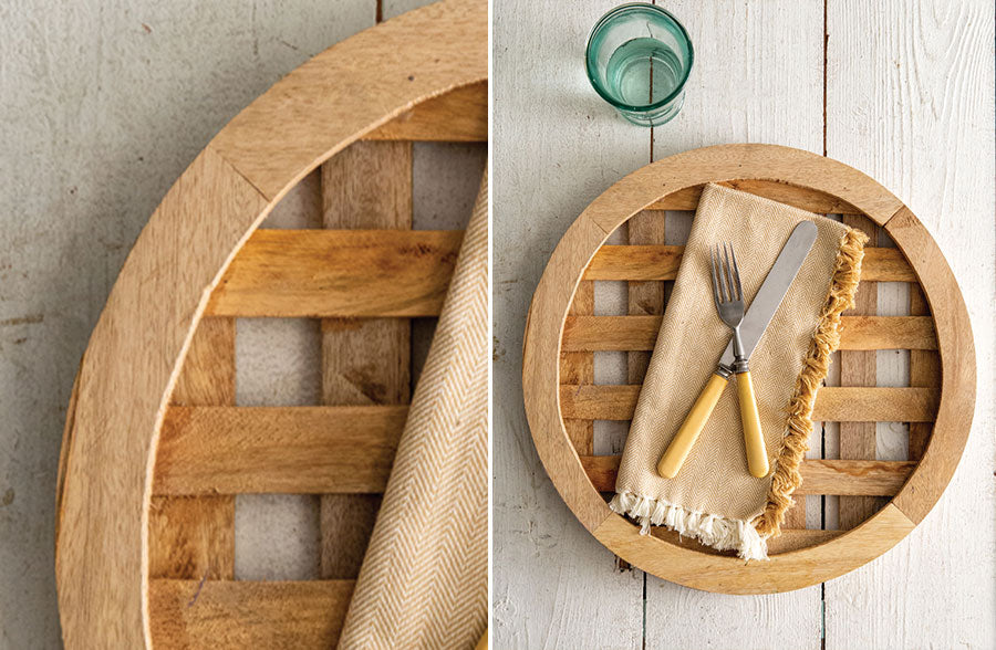 Not only are these wood charger plates beautiful but the perfect way to take your place settings to a whole new level! We just LOOOOOVE the gorgeous details, size, shape and ahhhhhmazing quality of them! Place a set of these on your dining table for any party or gathering and add some old world charm to your space! AND the neutral color and wood lattice design is versatile enough to pair well with all types of décor for years and years to come! These wood charger plates are just so gorgeous you could even get creative and hang them on the wall or use them in the bathroom to hold perfume bottles lotions andmore!!