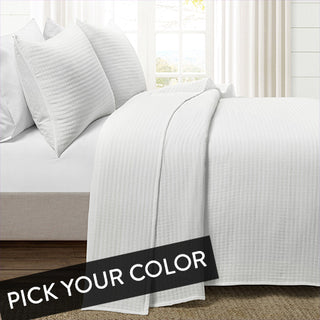 Bring luxurious style to your European farmhouse or shabby chic décor with our Yarn-Dyed Cotton 3 Piece Bedding. With its classic and elegant design, the fresh look of these quilts and shams give a feminine, yet refined look and will change the look of your bedroom in an instant!